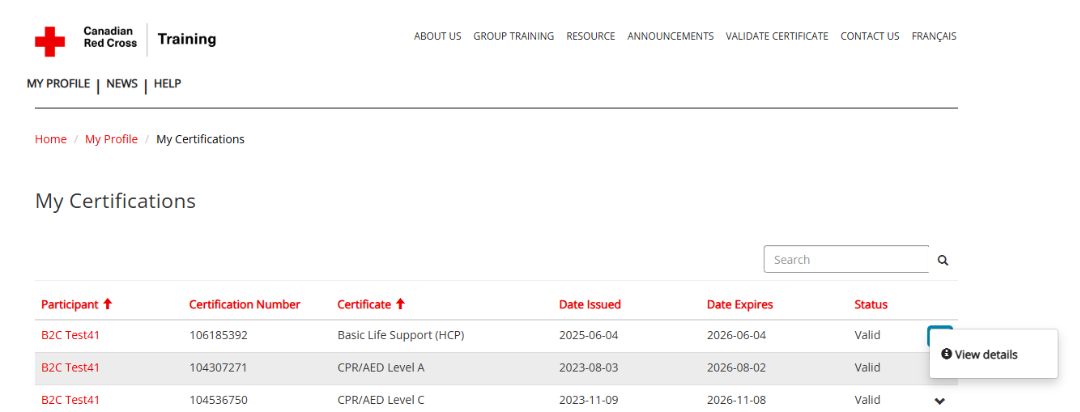 If you have taken a Canadian Red Cross online course your certificates of completion are available through the Canadian Red Cross Learning Campus or within your My Red Cross Profile.