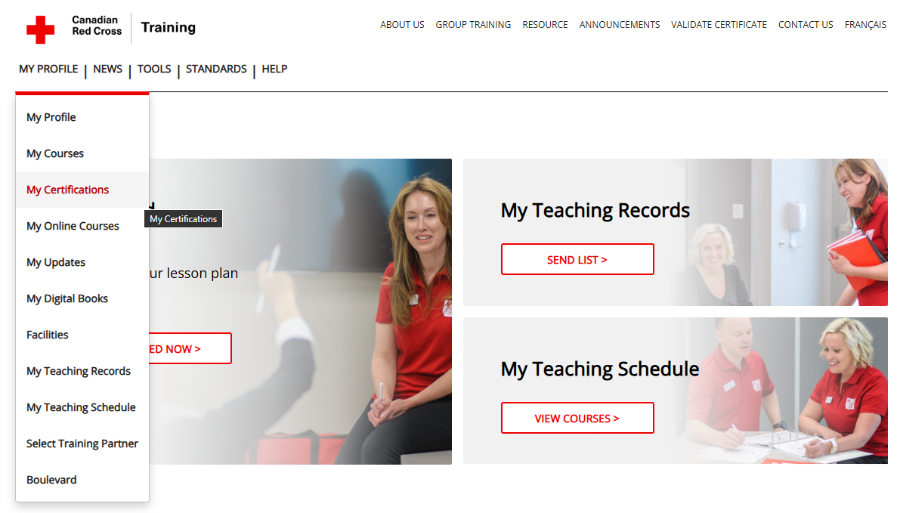 - If your instructor certification has expired, you will not be able to create courses or issue certificates and you will receive the error message ‘Invalid Instructor’. You can recertify within the 6-month grace period if you meet the requirements outlined in the Program Standard. Click here to recertify.