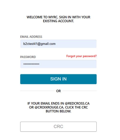 • You have previously received an invitation email from the Canadian Red Cross (CRC) and have accessed and created your MyRC online profile.