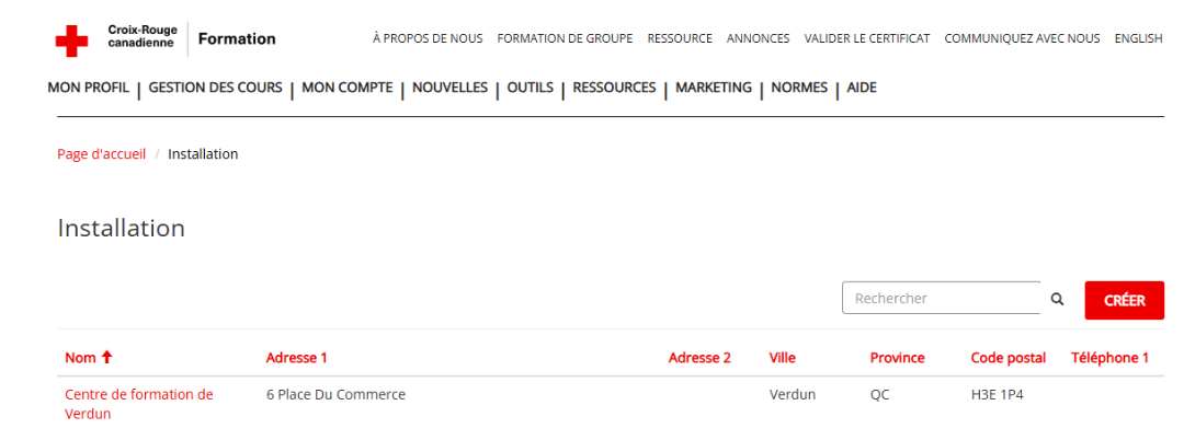 3. À la page Créer une installation, remplissez les champs obligatoires*. Si vous le désirez, vous pouvez remplir les autres champs. Une fois que vous aurez cliqué sur VALIDER L’ADRESSE, le message suivant s’affichera au bas de la page : Adresse trouvée, voir l’emplacement sur la carte.